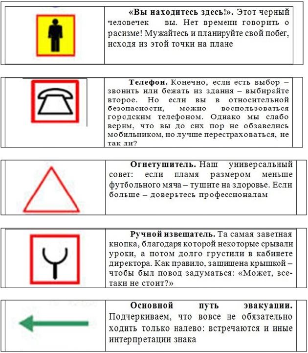 Как мы видим, на плане есть специальные пиктограммы. Давайте их разберем: