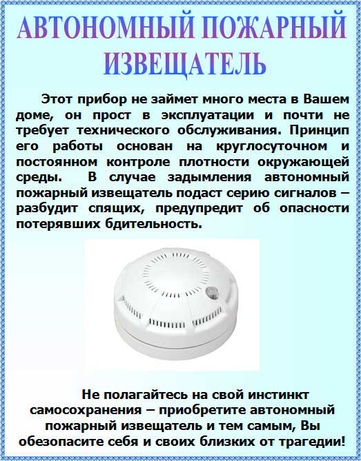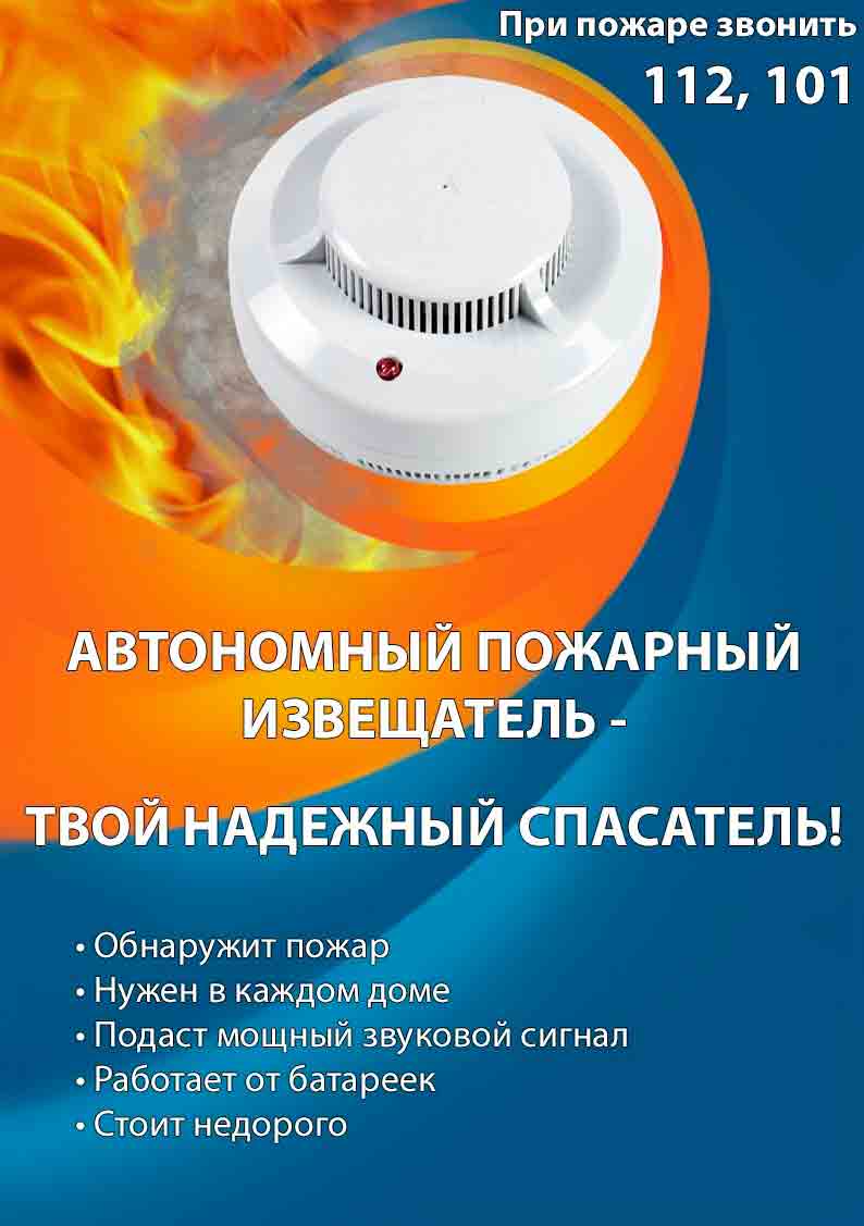 Сделайте свою жизнь безопаснее – установите автономный пожарный извещатель.